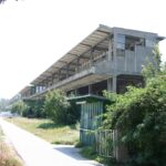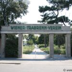 Die Trabrennbahn wurde im Jahr 1879 eröffnet, die Tribünen stammen aber aus den 1910er Jahren (erbaut zwischen 1911-13 nach Plänen der Architekten Emil Hoppe, Otto Schönthal und Marcel Kammerer). Während die Haupttribüne in den 60er Jahren verglast wurde und immer noch in Verwendung ist, verfällt die westliche Tribüne nun schon seit Jahren.