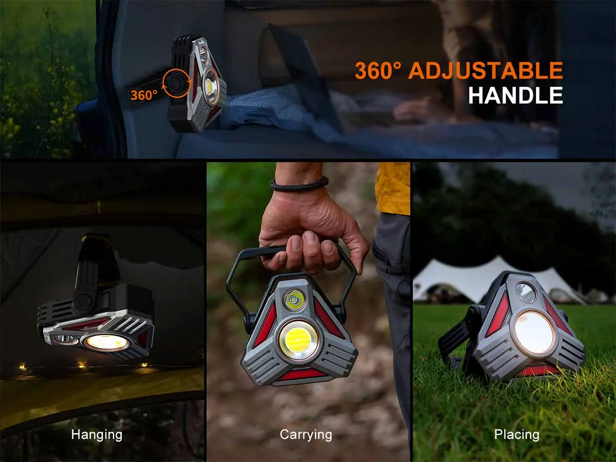 Die FENIX CP50R Arbeitsleuchte liefert beeindruckende 5.500 Lumen und einen Lichtstrahl von bis zu 450 Meter Reichweite. Ihr einzigartiges dreieckiges Design erinnert an ein Warnschild und macht sie zu einer wertvollen Hilfe auf gefährlichen Baustellen und bei Notfällen am Straßenrand. Neben den ultrahellen Flutlicht- und Spotlichtmodi (die für maximale Leistung kombiniert werden können) bietet sie fünf Leuchtmodi für Signalisierung und bessere Sichtbarkeit.