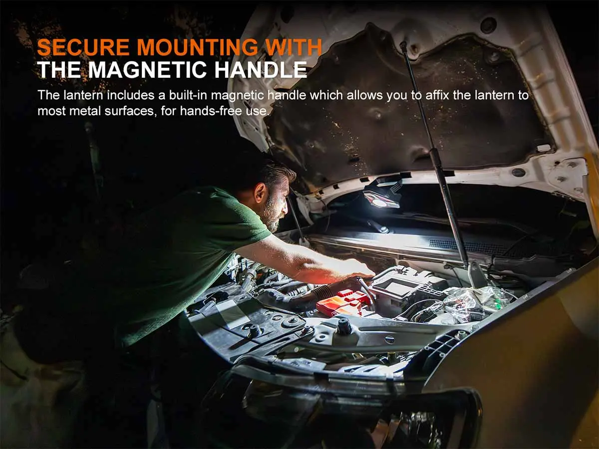 Mit Magnetfuß, Stativhalterung und ein um 360° drehbarer Griff spenden diese Arbeitsleuchte genau das Licht, das Sie brauchen, ohne Ihre Hände zu belasten. Dank der einstellbaren Flutlicht-Farbtemperatur können Sie im Handumdrehen von warmem Arbeitslicht zu strahlend weißem Licht wechseln. Sie ist per USB-C wiederaufladbar und verfügt über zwei 6.000mAh Akkus, die bis zu 240 Stunden halten – sie kann auch als Powerbank verwendet werden. Die FENIX CP50R besteht aus einer robusten Aluminiumlegierung mit Schutzart IP66 und ist ein ernstzunehmendes Beleuchtungswerkzeug für Menschen, die eine kompromisslose Arbeitsleuchte oder Campinglampe suchen.