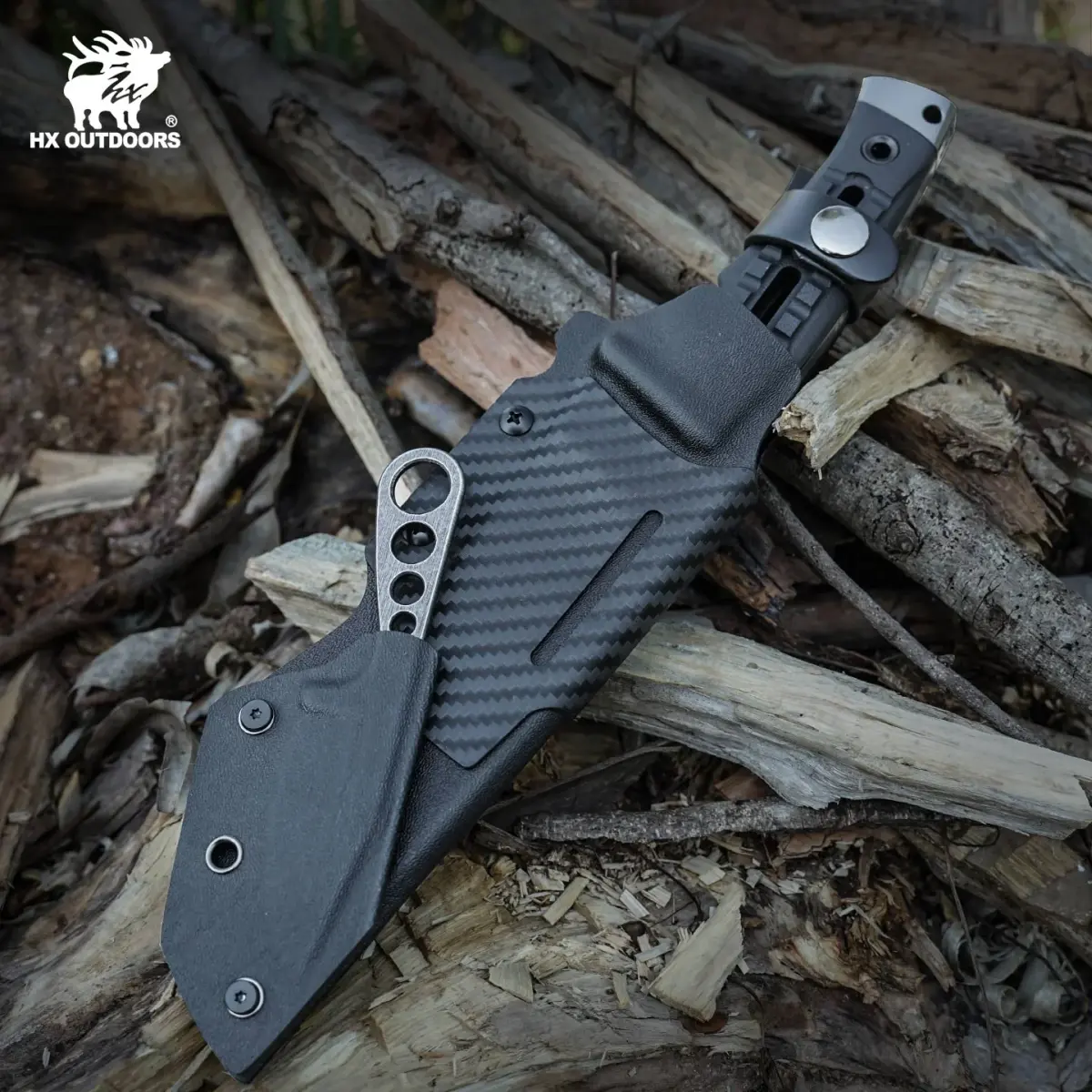 Dieses Set enthält ein robustes Hauptmesser aus DC53-Stahl mit hochwertigem grauem Titan-Finish und fortschrittlicher Wärmebehandlung für außergewöhnliche Haltbarkeit. Der ergonomische Griff besteht aus G10-Verbundfaser und verfügt über einen Glasbrecher für zusätzliche Funktionalität. Das kompakte Begleitmesser aus 5Cr15-Stahl mit Stonewashed-Finish bietet vielseitigen Nutzen für alltägliche Aufgaben. Beide Messer passen sicher in eine stilvolle Scheide aus Kydex mit Carbonfasermuster und lassen sich so überallhin mitnehmen.