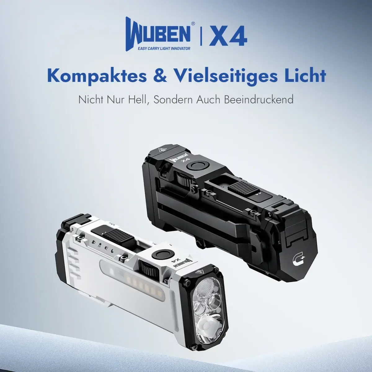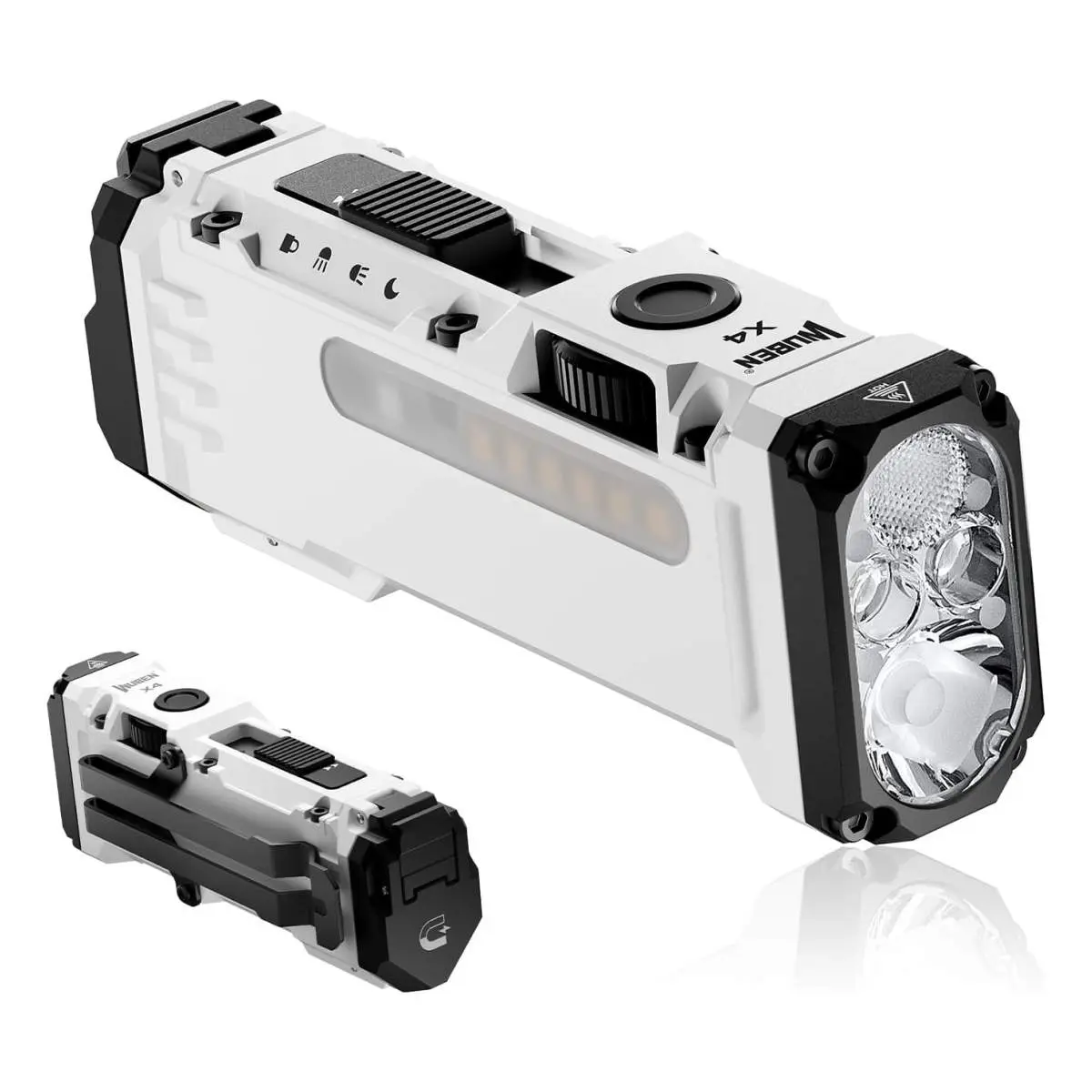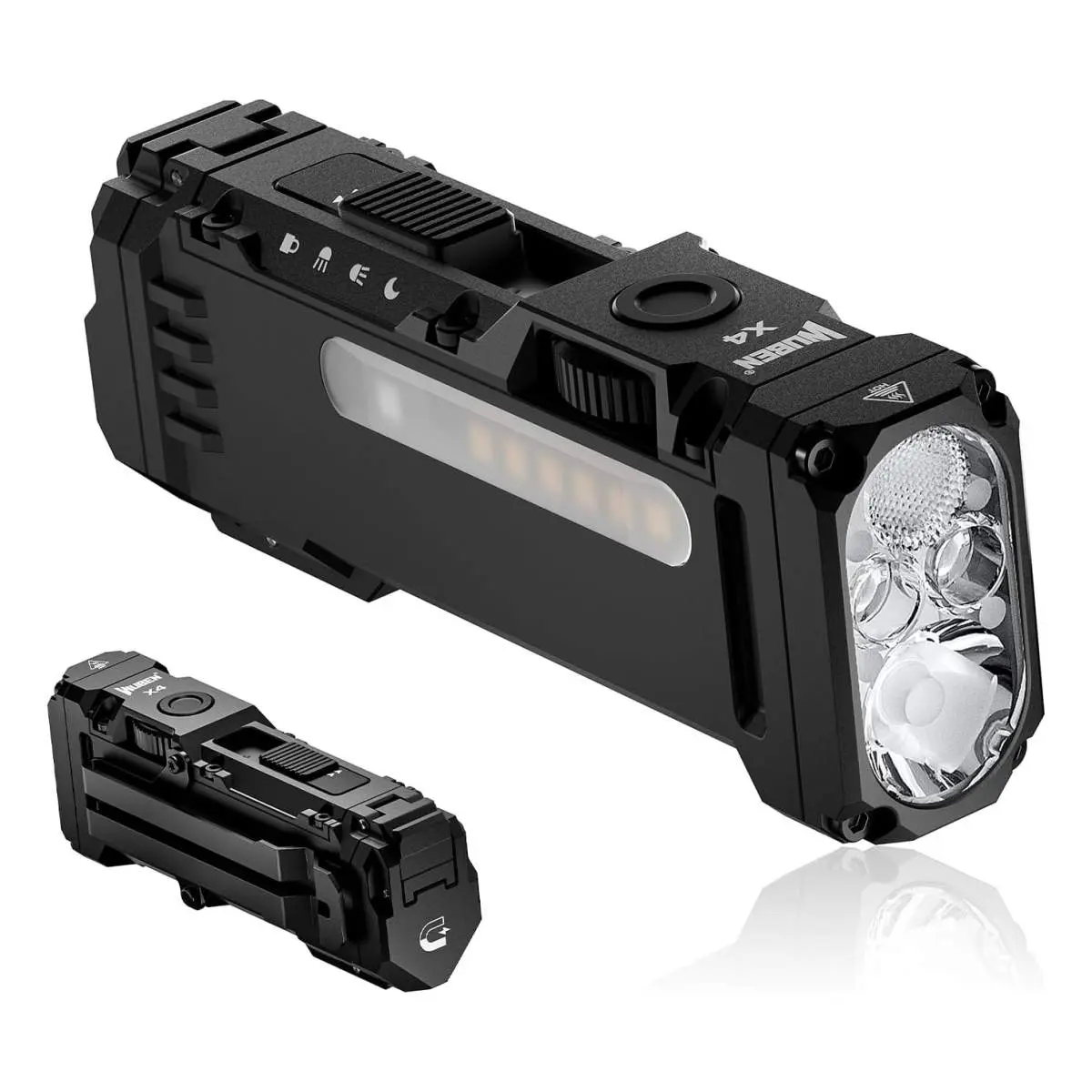 WUBEN X4 – kompakte EDC Taschenlampe mit 1.500 Lumen, Spot- & Flutlicht gleichzeitig durch 4 LEDs, Seitenlicht mit diversen Leuchtmodi, 1x 18650 Li-Ionen Akku
